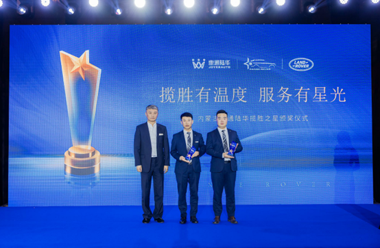 晚宴伊始,内蒙古惠通陆华相关领导登台致辞,对车主们的长期支持表达感谢,并分享了路虎揽胜 2025 年 1-7 月以 10584 辆销量领跑百万级豪车市场的佳绩。活动现场还揭晓了 “2025 年揽胜之星”,阿拉木斯、张文云两位优秀销售顾问获此殊荣,他们的服务故事与专业风采,赢得在场车主阵阵掌声。