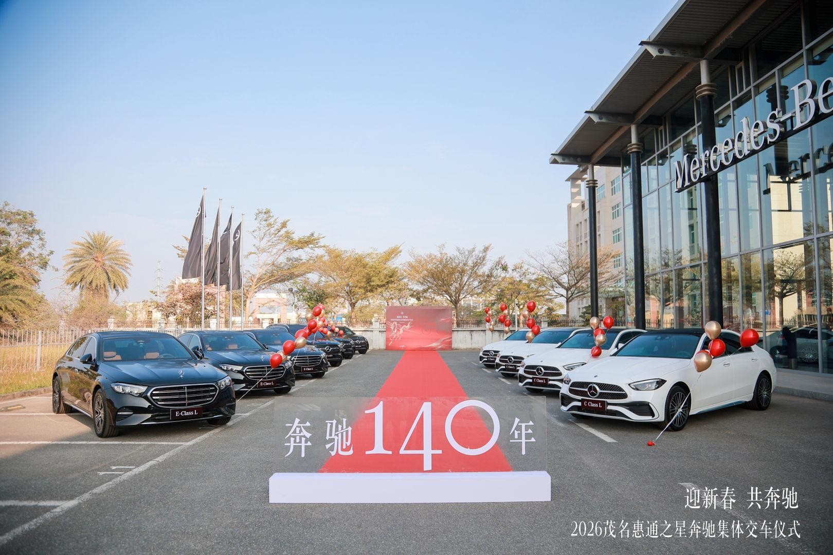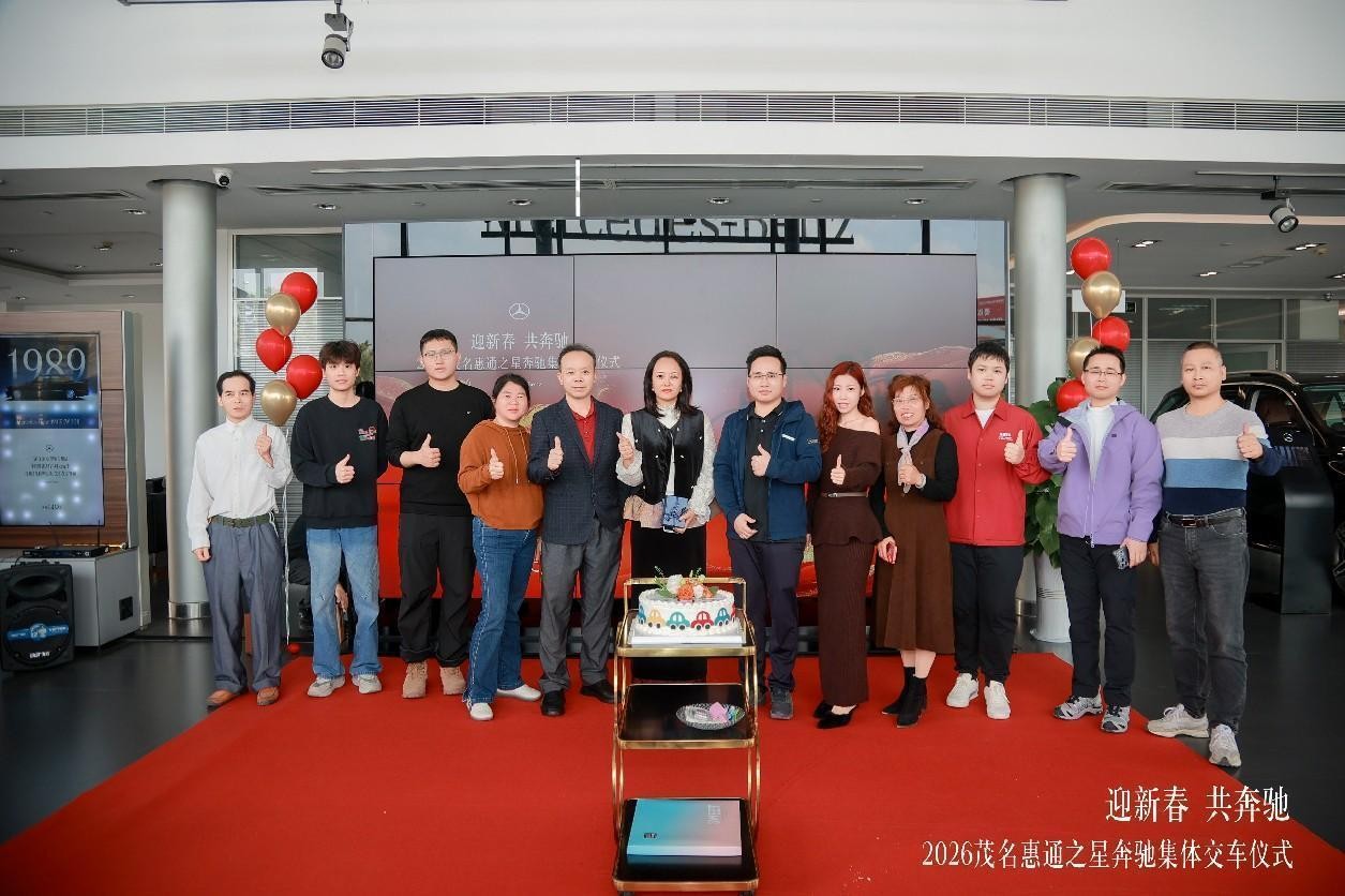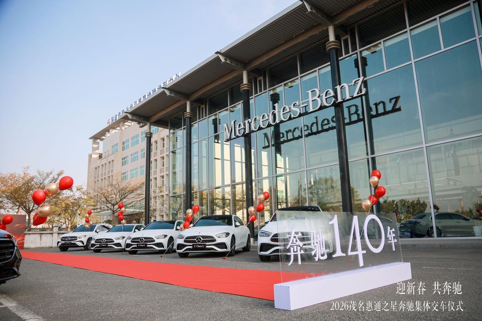 恰逢梅赛德斯-奔驰品牌140年,又遇新春佳节,1 月 29 日,茂名惠通之星以 “迎新春 共奔驰” 为主题,在展厅圆满举办奔驰 140 周年新春集体交车仪式。本次活动融合品牌庆生与新春交车双重主题,为已购车未交付车主打造极具仪式感的交付体验,同时为奔驰 140 周年系列庆典拉开序幕,进一步深化客户与品牌间的情感链接。