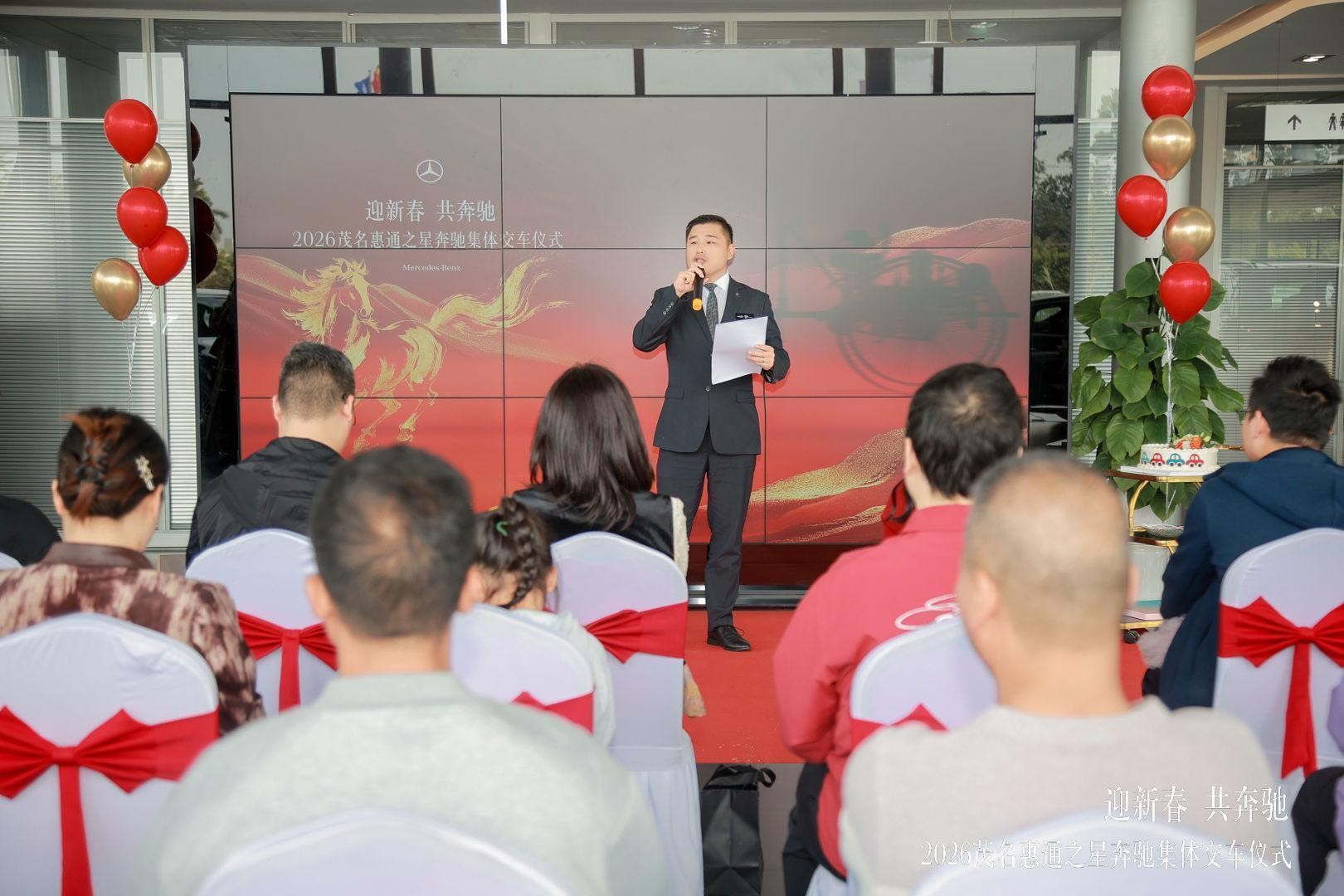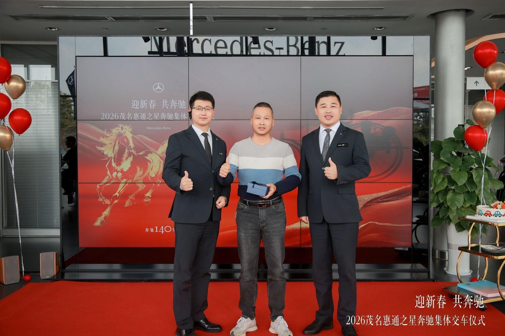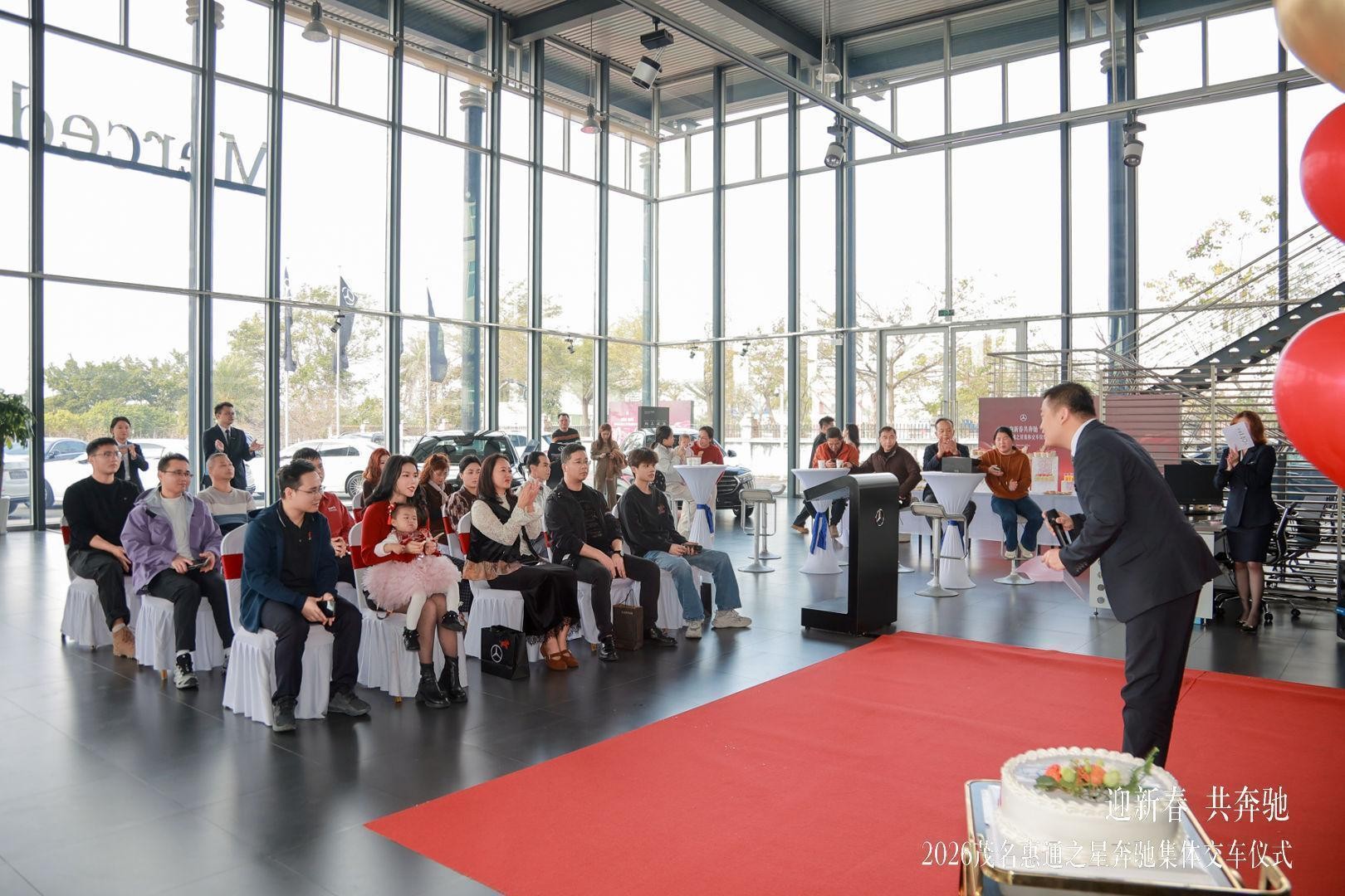 恰逢梅赛德斯-奔驰品牌140年,又遇新春佳节,1 月 29 日,茂名惠通之星以 “迎新春 共奔驰” 为主题,在展厅圆满举办奔驰 140 周年新春集体交车仪式。本次活动融合品牌庆生与新春交车双重主题,为已购车未交付车主打造极具仪式感的交付体验,同时为奔驰 140 周年系列庆典拉开序幕,进一步深化客户与品牌间的情感链接。