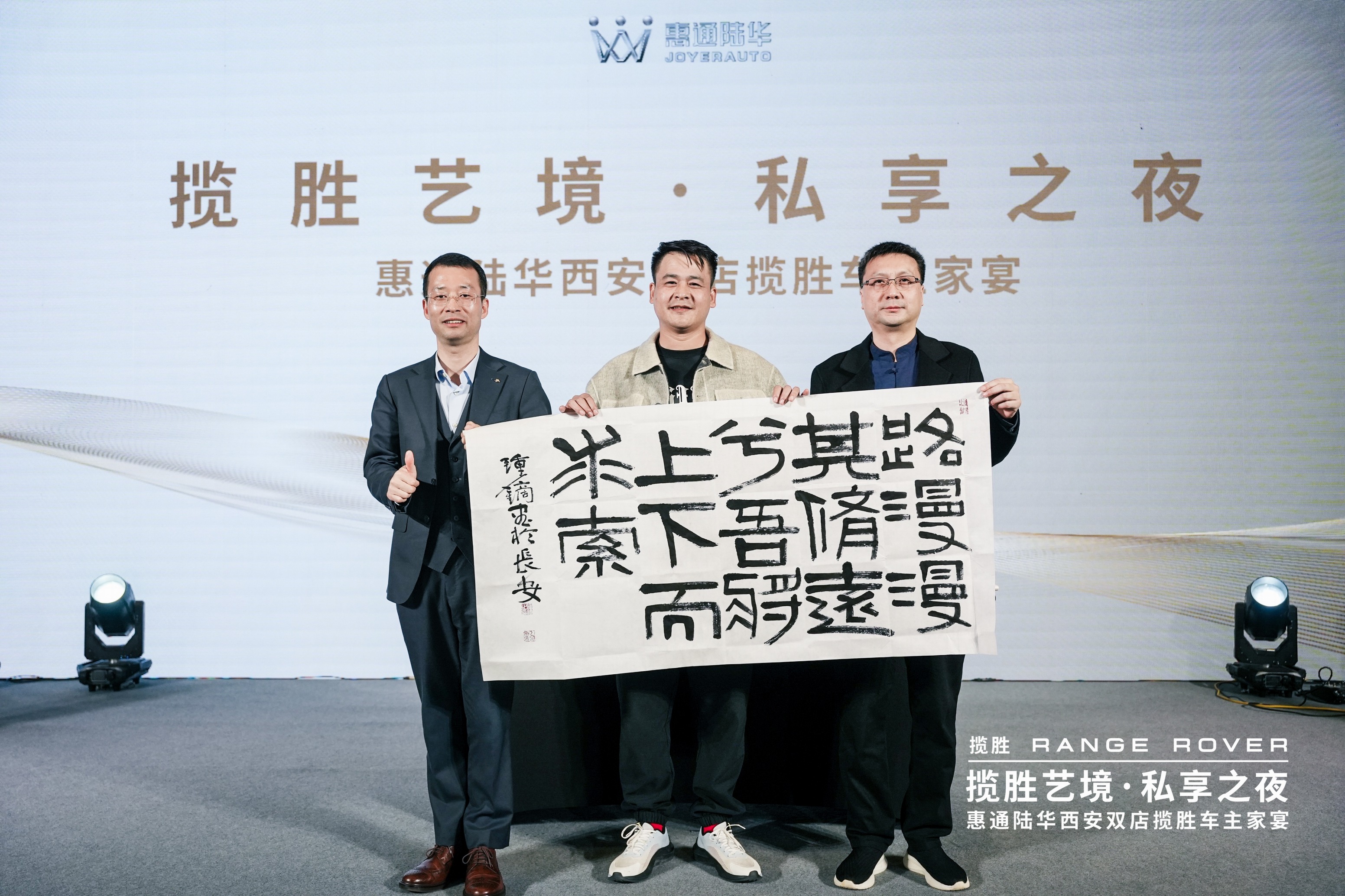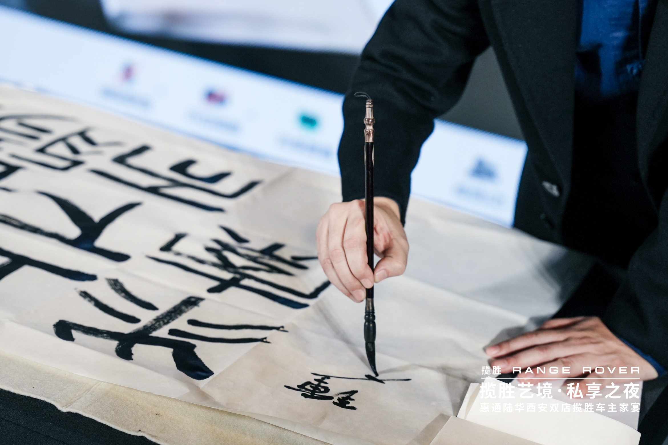 惠通陆华深耕西安,始终致力于为每车主提供尊崇的用车体验和高品质售后服务,这份坚持,离不开各位一路以来得支持与陪伴。宴会不仅准备了精致的佳肴,更有精彩的“艺境”时刻,我们特邀在书法艺术与文化领域卓有建树的嘉宾——钟镝老师,钟老师是中国书法家协会会员、西安市政协委员、西安市青联副主席,同时担任西安青年书法家协会主席,为活动精心呈献中华文明的瑰宝——书法艺术。中华书法,是无声的音乐,本身就蕴含着磅礴的气度与东方美学的神韵。老师现场挥毫,为我们展现了书法艺术的至高魅力,共同感受 “笔走龙蛇,翰墨生香” 的揽胜艺境!