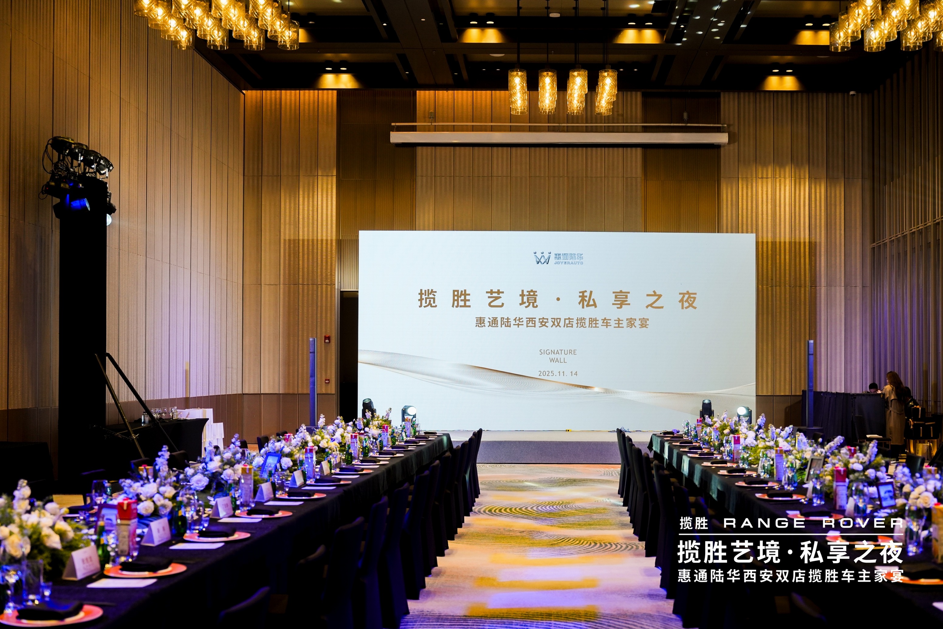 2025年11月14日,“2025惠通陆华・揽胜艺境・私享之夜・揽胜车主家宴”主题活动于西安浐灞华邑酒店隆重举办,惠通陆华西安双店揽胜VIP车主及家属荣耀出席,惠通陆华西安双店总经理李建平先生携揽胜之星精英团队向各位车主朋友、企业家及嘉宾的莅临表达了热烈的欢迎和衷心的感谢,共同开启了一段关于艺术、品味与非凡驾趣的私享旅程。