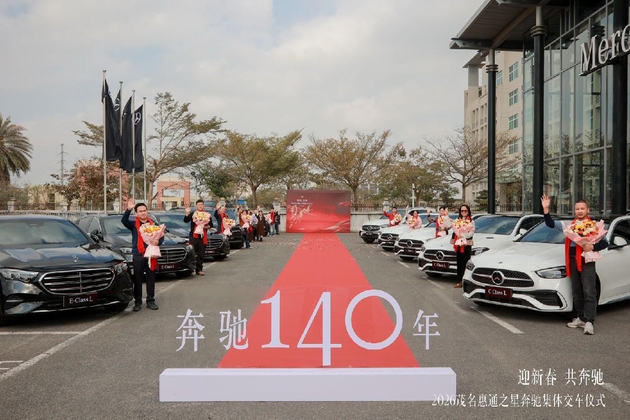 恰逢梅赛德斯-奔驰品牌140年,又遇新春佳节,1 月 29 日,茂名惠通之星以 “迎新春 共奔驰” 为主题,在展厅圆满举办奔驰 140 周年新春集体交车仪式。本次活动融合品牌庆生与新春交车双重主题,为已购车未交付车主打造极具仪式感的交付体验,同时为奔驰 140 周年系列庆典拉开序幕,进一步深化客户与品牌间的情感链接。